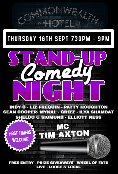 Fortunately there’s other news to get excited about as other NQ rooms are rising to the challenge. Firstly, I’m thrilled to say that the Commonwealth Hotel is hosting comedy again!